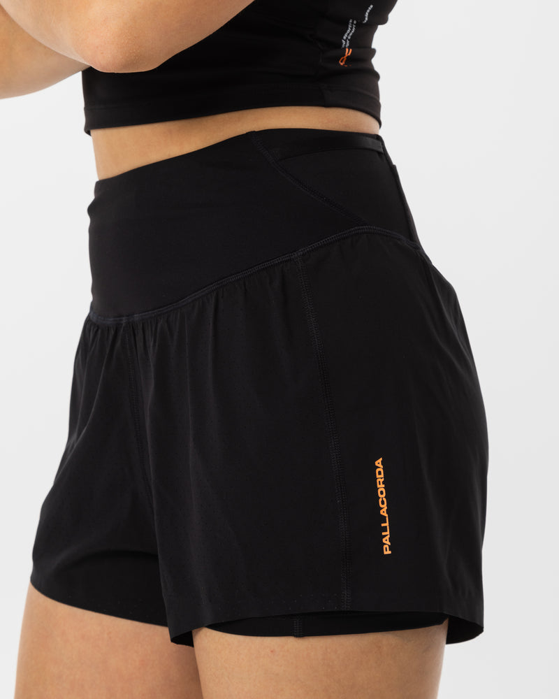 The 2-in-1 Court Shorts are built for performance without compromise. With built-in compression undershorts, a ball pocket, and laser-cut ventilation, these womens padel shorts deliver high-performance movement with zero distractions - whether you're mid-rally or mid-rep.