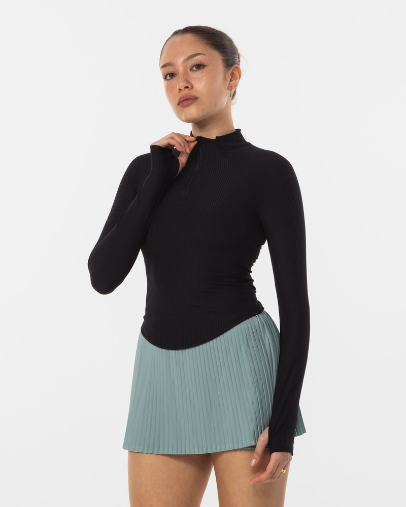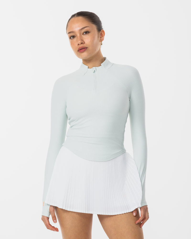 The Performance Quarter Zip Top is a modern take on the performance quarter zip - cut close, built light, and finished with a structured ribbed texture for elevated form. Designed for movement and recovery, this women's padel quarter zip blends breathable performance with a sleek off-court profile.
